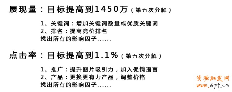 直通車流量=展現(xiàn)量*點(diǎn)擊率,明白了責(zé)任,那我們接下來就來個(gè)壓力分解吧!