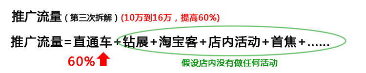假設(shè)除了直通車,其他活動我們都不去做,那么60%的壓力又全部壓在了直通車的身上,既然這樣那我們就還是接著往下拆分吧!