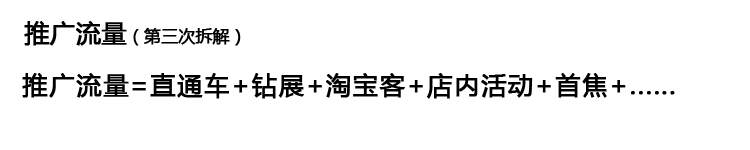 店鋪?zhàn)龅揭欢ǖ囊?guī)模,相信你的轉(zhuǎn)化率和客單價(jià)是很難有較大變化的,那么我們就假設(shè)他保持不變,而我們的銷售額要提高20%,怎么辦?那就只有想辦法提高流量了,流量怎么來?又怎么去提高呢?我們繼續(xù)來拆解它!