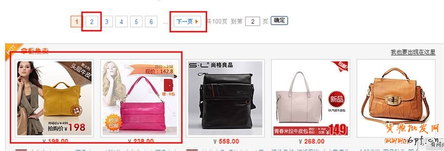當(dāng)我輸入“糖果色 女包”第一頁最下面的位置出現(xiàn)這樣五款包包。