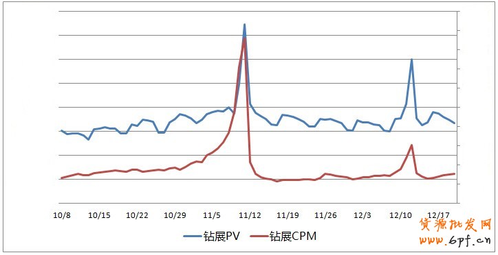 鉆展流量、CPM和CPC12月初開始上升,在雙12當天達到峰值,雙12后流量還維持在較高水平