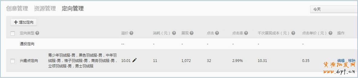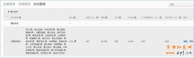 下面是掌柜在推廣男士羽絨服最開始選擇核心興趣點,在這個基礎上慢慢增加拓展品類的興趣點,根據投放數據中的點擊成本去判斷是否需要繼續增加。