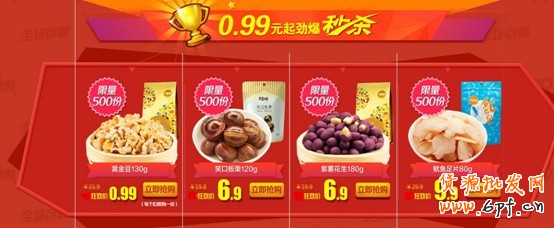a)限量份數秒殺:當天可分多次秒殺,使流量回流,持續全天流量高漲,秒殺同時增加消費者購買其他寶貝機會