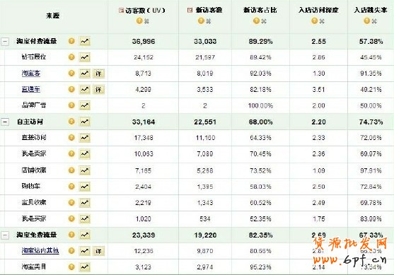 從圖中可以看出鉆石展位的入店訪問深度是2.86,直通車的訪問深度為3.51,而店鋪收藏,即老客戶帶來的入店訪問深度卻只有1.09。首先鉆石展位和直通車的訪問深度說明在店鋪里面推廣的寶貝都給了相應的頁面展示,如鏈接、搭配推薦等這些跳轉的頁面,做得都比較好。但是此店鋪老客戶訪問深度只有1.09,可能是店鋪的新品不夠。對客戶的吸引力不夠。但現實中還有店鋪比這家店鋪還要慘,訪問深度甚至不到1。通過以上數據分析之后,我們就可以發現,許多中小賣家都是非常注意新客戶的引入,而經常忽略對老客戶的維護。