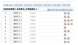 我們可以看到,6.1元以后的出價者,沒有流量了,但實際上這只是理論上的,應(yīng)為人群定位不一樣,而且有交集,根據(jù)經(jīng)驗,12元以下就很難獲得流量了。