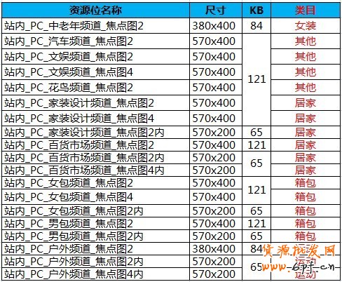 第二批資源位頻道類目為:汽車、文娛、花鳥、家裝設(shè)計(jì)、百貨市場(chǎng)、女包、男包、戶外