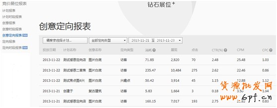 第二天查看創(chuàng)意定向報表,分別看同樣創(chuàng)意在不同定向下的點擊率、同樣定向不同創(chuàng)意的點擊率~請仔細看創(chuàng)意名稱和定向類型的數(shù)據(jù)反饋