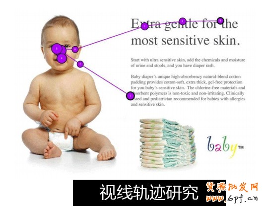 通過記錄統計發現,很遺憾,人們的目光都聚焦在了嬰兒的臉上(紅色位置為重點瀏覽位置)!對他們的產品賣點的關注可以忽略不計!可以說是個失敗的廣告。