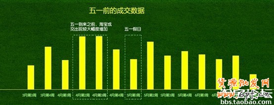 從去年同期全網(wǎng)成交趨勢(shì)來看,五一前3周開始,全網(wǎng)成交出現(xiàn)一個(gè)小高峰。每個(gè)時(shí)間段需要掌柜做不同的店鋪籌備工作。