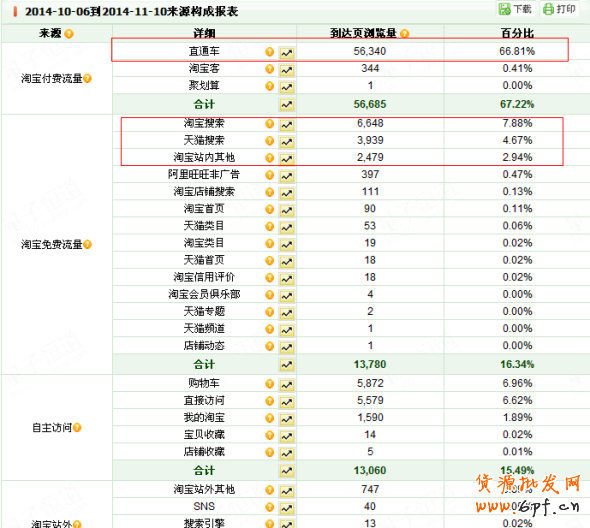 通過直通車引流使得賬戶流量大大提升,其中直通車占比較大。雖然淘寶自然搜索的占比變低了,但是瀏覽量卻大大提升。這也是直通車引流帶動的另一個好處。