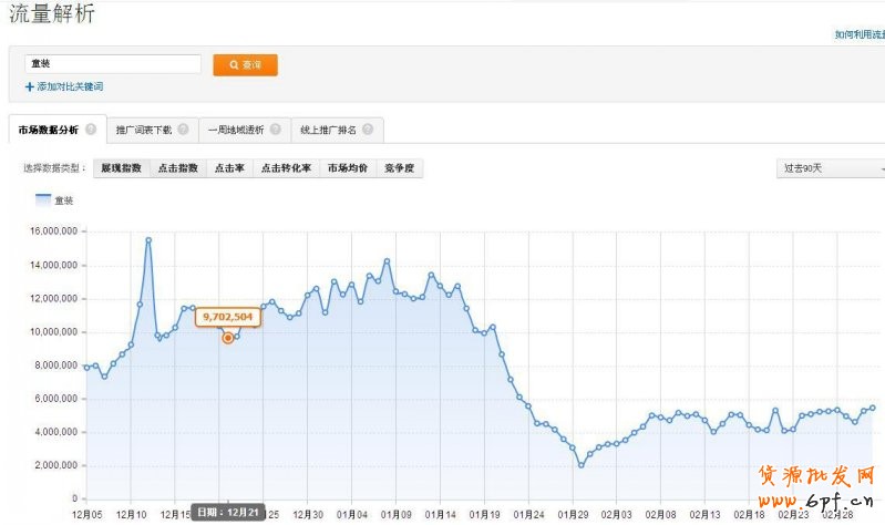 進入關鍵詞優化頁面,點擊一個關鍵詞(這個詞可以是中心詞,流量大的詞,轉化高的詞),進去關鍵詞分析頁面。也可以直接進入流量解析,輸入一個關鍵詞。