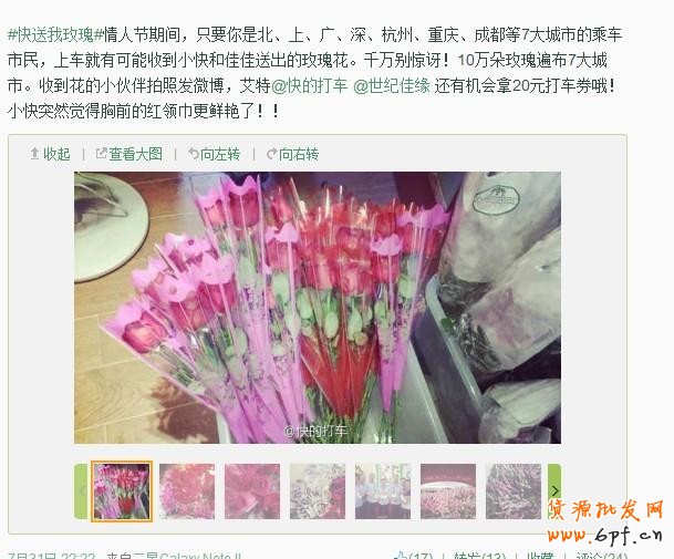 在七夕之際,紅娘“世紀佳緣”為自己牽了紅線,攜手快的打車送玫瑰花,這可真是“送人玫瑰,手留余香”啊!其他婚介網站可以好好學學哦!