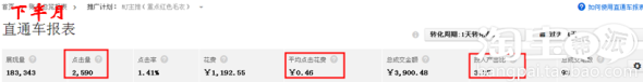 下圖,是我們近一個月的直通車推廣報表,下半月與及上半個月對比,在保證點(diǎn)擊量的情況下,我們CPC不僅降低了,ROI也足足翻了一倍。接下來,就和大家分享一下,如何通過直通車關(guān)鍵詞數(shù)據(jù)分析合理優(yōu)化關(guān)鍵詞,從而達(dá)到降低CPC和提升ROI的目標(biāo)呢?