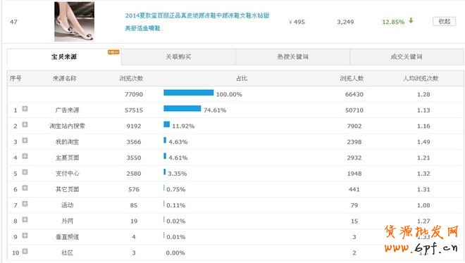 我們從數據魔方可以看出。直通車7天有6W個點擊。最近7天成交3000筆。我們算個利潤。按照這個鞋的市場行情來看,這個款在市面上拿貨是35-40元,加上快遞全國6元和包裝雜七雜八大概是50塊錢。一雙鞋的利潤是39塊錢。60000*PPC(平均1.2元)=72000元。按照利潤來算的話,還有5萬塊錢的利潤。這個就是直接靠直通車盈利來打爆的。