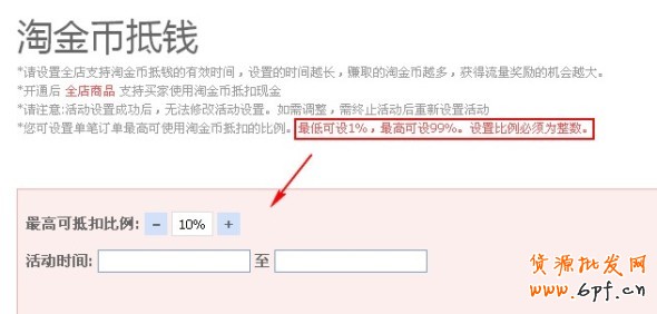 點擊【立即運(yùn)行活動】,選擇淘金幣最高可抵扣比例與抵扣的有效時間:數(shù)據(jù)表明開通10%以上的抵扣比例對成交轉(zhuǎn)化的提高效果更顯著!