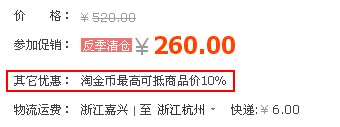 - 買家在寶貝詳情頁面可以看到淘金幣抵扣的優(yōu)惠提示
