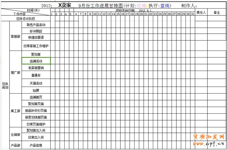 統一規劃各部門的分工及時間進度安排,如下圖所示。