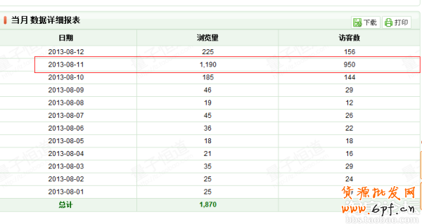 這個是活動當天的流量來源,大家可以看看,有了天天特價的推廣加入,顯著的對比效果是多么明顯,可見,天天客家對于我們小賣家來說是多么重要的一個武器與優勢,大家利用得好完全可以跟某些大店鋪有的一拼了。