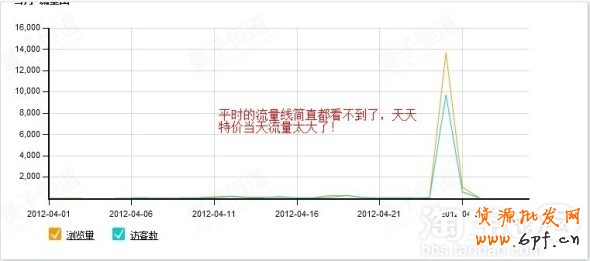 我們當(dāng)天的流量和銷售情況上面已經(jīng)有截圖的,再次感謝天天特價(jià)的威力讓我們?cè)缭缇捅弧緭尮饬恕?/p>