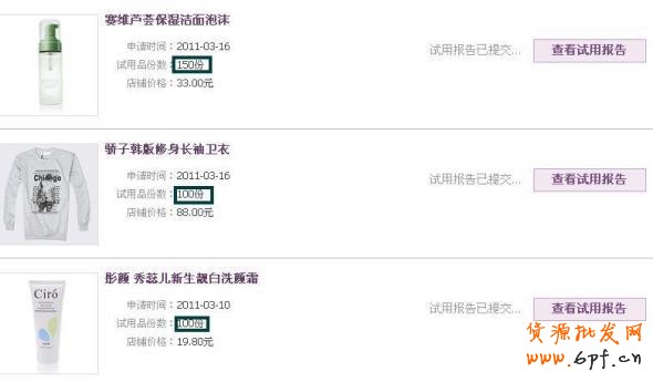 量的東西來申請,對于初涉試用中心的人來說,試用量多的試用機會也會大,如果你試用過很多東西,那你可以憑借著以往公正客觀的試用報告去申請那些30份,20份.10份,甚至1份的試用。因為你有試用過了,商家和小二對你信任度就增加了!