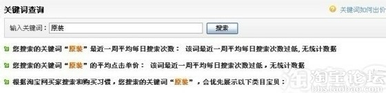 進入通道:我是賣家==》商家推廣==》淘寶直通車==》工具及其他==》關鍵詞查詢