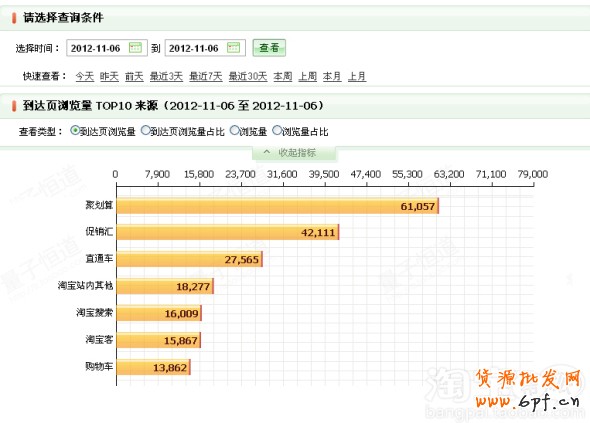 這是11月6號當天的流量,聚劃算流量很厲害,不過促銷匯也緊隨其后。。