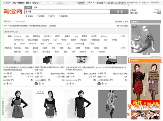 1. 淘寶站內(nèi):淘寶網(wǎng)關(guān)鍵詞搜索結(jié)果右下側(cè)“店家精選”區(qū)域3個展示位