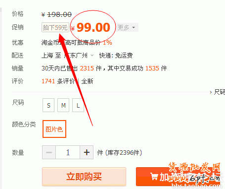 這樣做好之后,在寶貝頁面就是這樣顯示的了,如下圖,買家看到的打折價(jià)格雖然很高,但是促銷標(biāo)簽里面寫的“拍下99”,讓買家一目了然的了解到了真實(shí)價(jià)格,大大增加購買欲哦!!