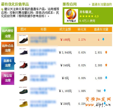 關于直通車、鉆石占位和硬廣等推廣方式,我們可以"棄車保帥",減少點擊高但成交金額少的產品,把有限的推廣金額用到那些轉化率高的產品上去。同時可以在這些產品頁面上做文章,把店里別的熱銷產品做關聯銷售,或廣告海報等。增加其他產品的曝光率,這樣就等于把一個點擊成本分攤了。(如下圖中,轉化率只有0的產品,直通車流量用掉了1020,就很不合理)