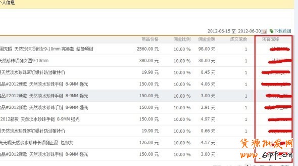 (3)推廣過的淘客:這里的是最后也是最容易最有效的方法了,有人會問,有沒有具體聯系淘客的方法,讓他們給我們推廣,當然有。大家做好上面的過一段時間應該已經有淘客開始推廣出去產品了,那么怎么才能找到他們呢,大家到自己的淘客里,看一下推廣明細,在最后有淘客的旺旺。有了這些旺旺,就可以聯系到淘客了。下面附圖一張,哪里聯系淘客:紅色框內,都是淘客旺旺。