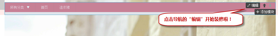 如何編輯旺鋪2012 的導航呢?進入店鋪后臺,選擇導航處的”編輯“: