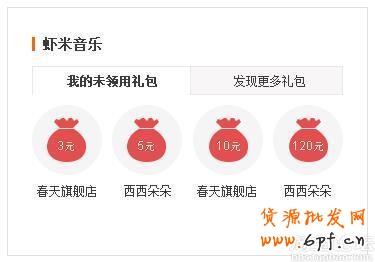 此外,在 <我的淘寶> 首頁的蝦米音樂模塊中,也將顯示他未領用的禮包: