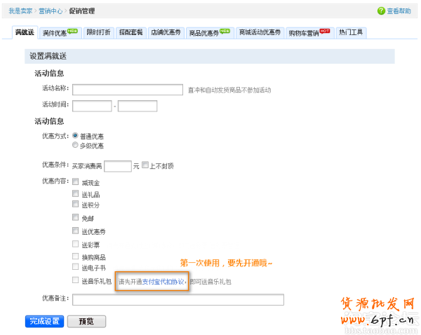 滿就送音樂禮包,快去開通設置吧!==>>“我的淘寶--我是賣家--營銷中心--促銷管理”!