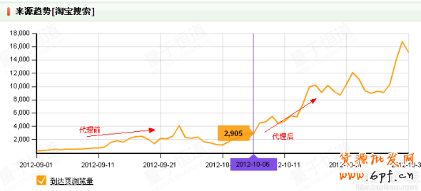 成長期是一個加速轉化率的過程,此刻將加大優質關鍵詞入口的搜索排名,目的是達到快速引流,以下寶貝數據截圖,表明該寶貝流量得到明顯提升: