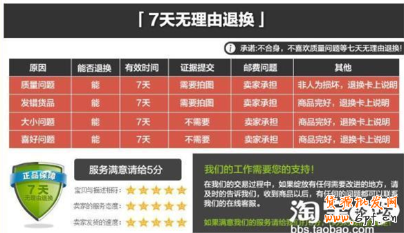 有些買家或許還在猶豫不決,這時候再告知一遍自己店鋪的服務(wù)承諾,七天無理由退換貨,許多買家沖著這個最后下決心購買了哦!