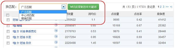 5、另外大家有沒有注意到一個細節,巴巴哈支持廣泛匹配、中心詞匹配和精準匹配(如果有同學不知道何為廣泛匹配、中心詞匹配和精準匹配,大家可以去網上搜索下,或者給小部提問,小部盡可能逐一解答各位的問題),這一小小的設計細節,完全跟直通車后臺一模一樣。點此復制選中關鍵詞,可以一鍵幫你把詞選好,你可以放心地把詞粘貼到直通車后臺來。是的,就這樣簡單。