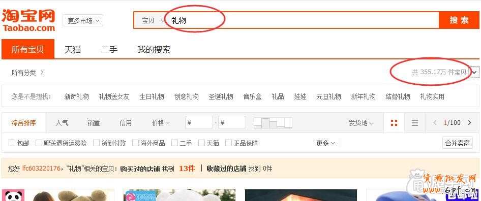這就是一個共通詞。在去掉一部分共通詞之后,我們的關鍵詞或許還有多余,那么該如何去做呢?取舍之間得大道。我們家的寶貝,很多買家是買來作為禮物贈送的,但是當我們搜索禮物這么一個關鍵詞的時候,出現(xiàn)了這種情況,如圖: