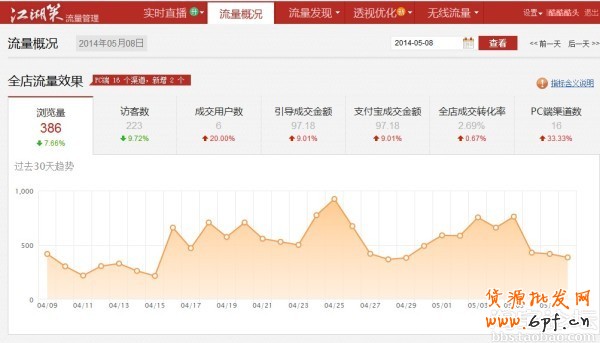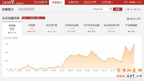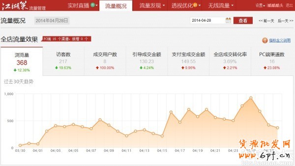還有就是我現(xiàn)在急需想解決的一個問題是:淘寶的商品數(shù)量問題,我先提出來,希望大家在看完帖子幫我思考下(很重要):現(xiàn)在才櫥窗位置是40個;每天24小時;一周7天;也就是24*7=168個商品;這些商品都平均的上架分布在一周,然后每天都有定時的下架。這樣就可以做一個動態(tài)的平衡;但是我想要的是:怎么能再這個動態(tài)的平衡里面要沒個時間段都有商品,上下架交換,動態(tài)的櫥窗推薦;這個很關鍵,這個公式大家都知道了,但是我想知道的是為什么一些皇冠店鋪,金冠店鋪80%的商品數(shù)量都是80-90個,這個你們好信的自己去看看,我想現(xiàn)在想知道的就是這個數(shù)量是怎么出來的!我算了無數(shù)次,可是才學膚淺,沒有算出來;但現(xiàn)在有固定的搜索來源,我自己也是160多個商品,所以自己還不能輕易下架;好吧言歸正傳,說的看定沒有唱的好聽,我先上圖片;這是我3月22號開店到現(xiàn)在的流量圖,還有一些部分我的每天宣傳圖;