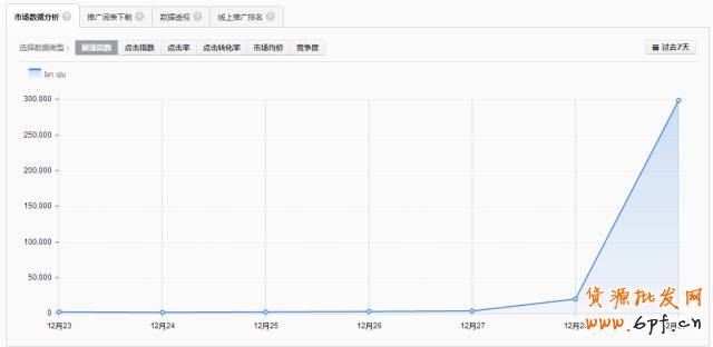 12月29日展現量299652。競爭度的走勢有點奇怪,但是確實很低。