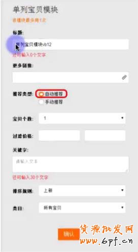 選擇自動推薦的話,根據(jù)價格區(qū)間關(guān)鍵詞、排序規(guī)則(上新、銷量、價格)、寶貝類目等自動添加寶貝;