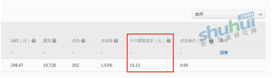 測試第三天千次展現成本下降到15.13元。