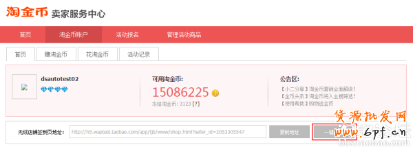 地址鏈接:http://seller.vip.taobao.com/sellerCoin/index.htm?auto_set=true