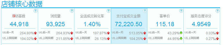 轉化率方面,女裝行業轉化率大概2%.但這個行業大賣家太集中,活動的轉化還是比較滿意的.有一天預熱所以顯示飆升會很高.