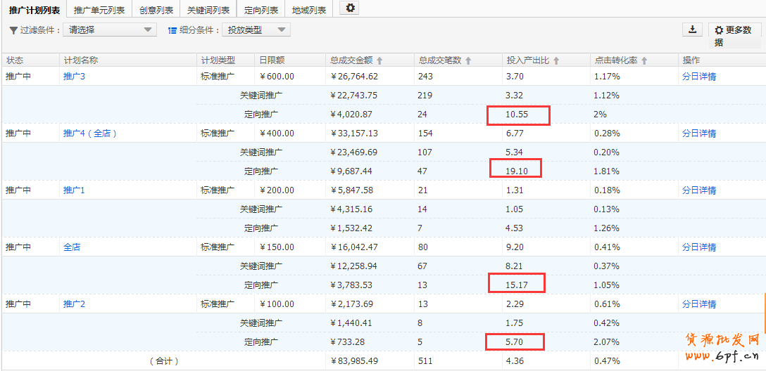 1)整體賬戶的定向推廣roi遠遠高于平均水平