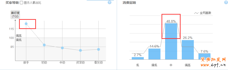 人群搜索這一塊所添加的指標是根據主營類目結合淘寶指數這一工具分析近一年的數據情況,消費人群性別占比大概是男女各占一半,那么就把男受眾和女受眾給單獨區分開來測試;買家喜好度在新手這一塊占比是最高的,也就是說這是一個很好的商機,這一部分人群就好比是未開發群體,那么把“瀏覽未購買店內商品的訪客”給添加進來一并測試,通過測試后發現果真是取得了意想不到的效果。