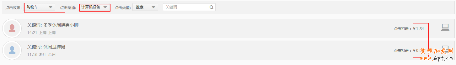 解析:1、紅色頭像代表女性,藍色頭像代表男性,暗色頭像代表系統無法區分,為未知性別;2、顯示每個有點擊關鍵詞的點擊量,點擊率轉化率情況;3、寶貝今 天數據和昨天數據對比;4、上個小時與實時數據對比趨勢;5、PC和無線對比;6根據點擊效果,點擊渠道,點擊類型來篩選關鍵詞;7、手機點擊,電腦點 擊;8、點擊單價扣費;9、顯示寶貝所處計劃。