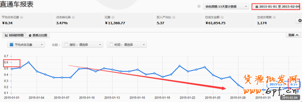 平均點(diǎn)擊費(fèi)用從1月初的6毛,降到了最近的1毛4;
