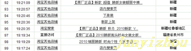 圖2中顯示有兩個**的MM和一個福建的MM,都在看不同的衣服,就在這時有人加我旺旺了,我便也加了她好友,但是她剛開始很久都沒說話,我以為是騙子(這年頭騙子太多了,嘿)或者廣告商,本來想拉黑算了,后來想想等看她說什么再說吧。緊接著我一看旺旺上地區寫的是吐魯番市,跟實時客戶訪問里的其中一個一樣的(實時客戶里的吐魯番市的MM看的是一款V領的衣服),我就想人家是不是也在看我的衣服哦,于是趕緊按量子統計的“寶貝被訪排行”(圖3),