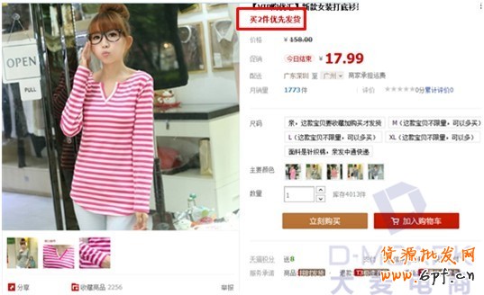 并不是所有的買家都愿意去等,所以如果你同一款寶貝有一種顏色是現貨的話,買家可能次而求之,買下可能不是最喜歡的顏色,但基本能滿足她的需求。因此,可以留住這部分買家的同時積累銷量,同時也是為即將開始的活動和預售積累人氣,一舉三得,如圖2所示。