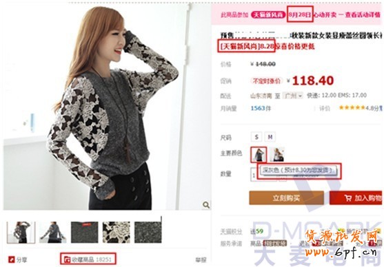 該寶貝有兩種顏色,其中淺灰色的款為現貨,而深灰色的款則為預售款,預售發貨時間為8.30。那么這種營銷手段有什么好處呢?